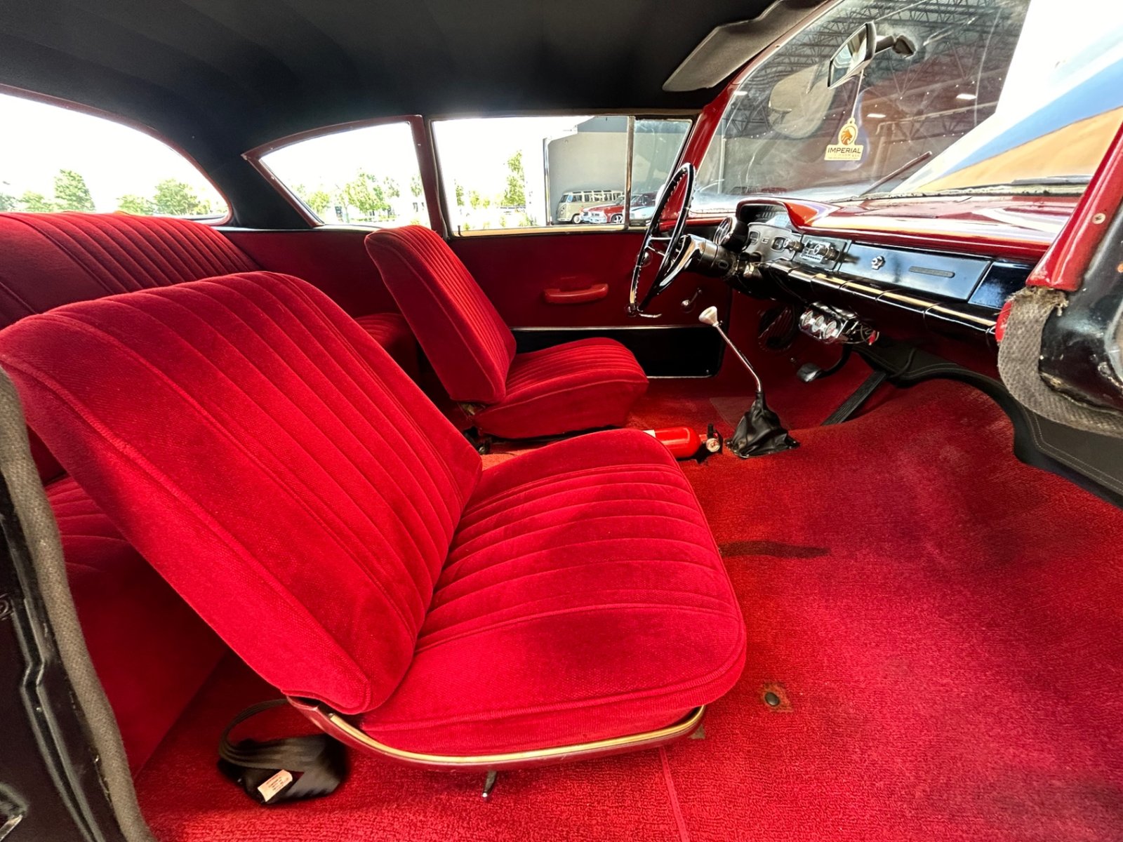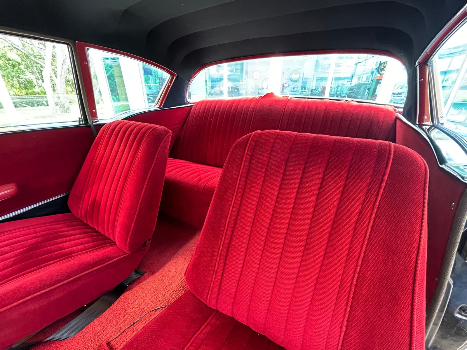 Under the hood of this 1958 Chevrolet Delray, you’ll find a modified 350 cubic inch small-block Chevrolet engine with a tri-power carb setup on an Offy aluminum intake, MSD ignition, chrome valve covers, and performance spark plug wires. It features a power brake booster with disc brakes up front, cast iron exhaust headers, and dual exhaust. The engine is paired with a 3-speed automatic transmission and rides on white wall tires with Chevrolet Rally wheels.