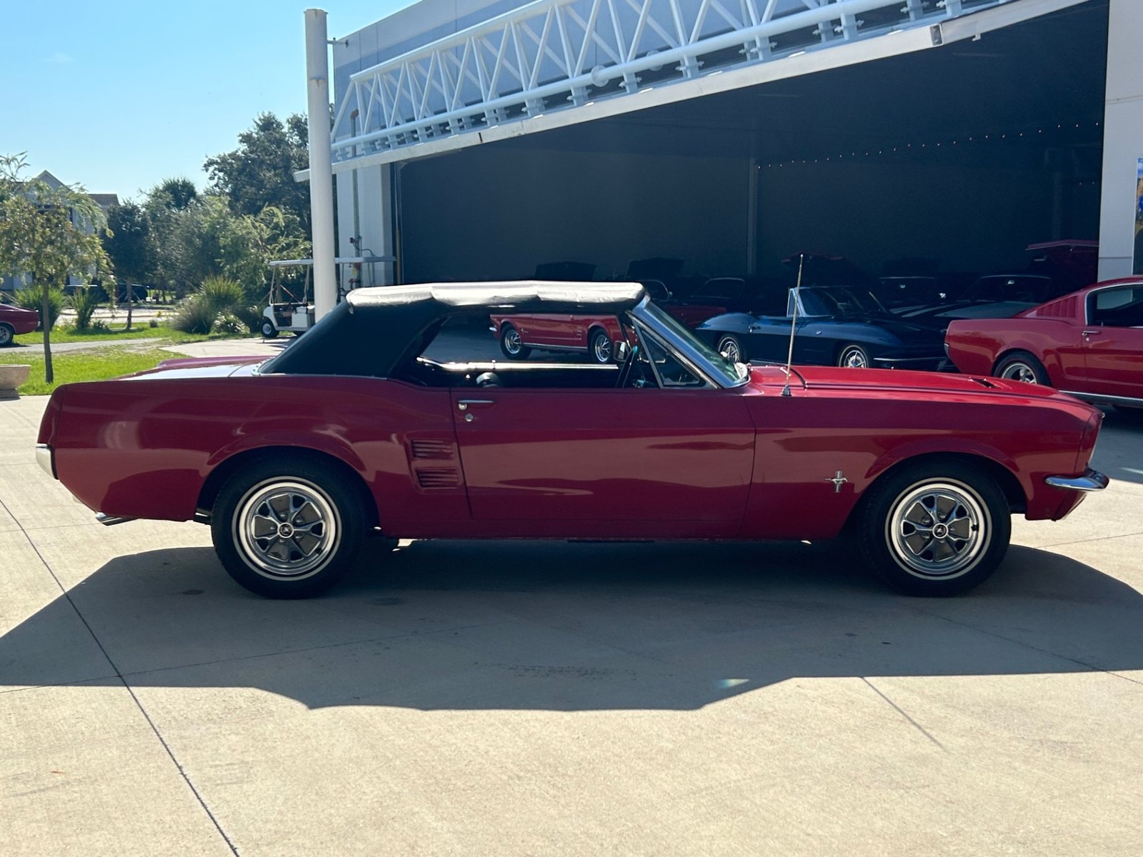 The exterior boasts red paint, a black convertible top, hood and side louvers, factory 5-spoke wheels, white sidewall tires, and chrome bumpers. The body lines and seams are excellent, and the trunk is stock with the correct mat. This Mustang is sure to turn heads with its classic look.